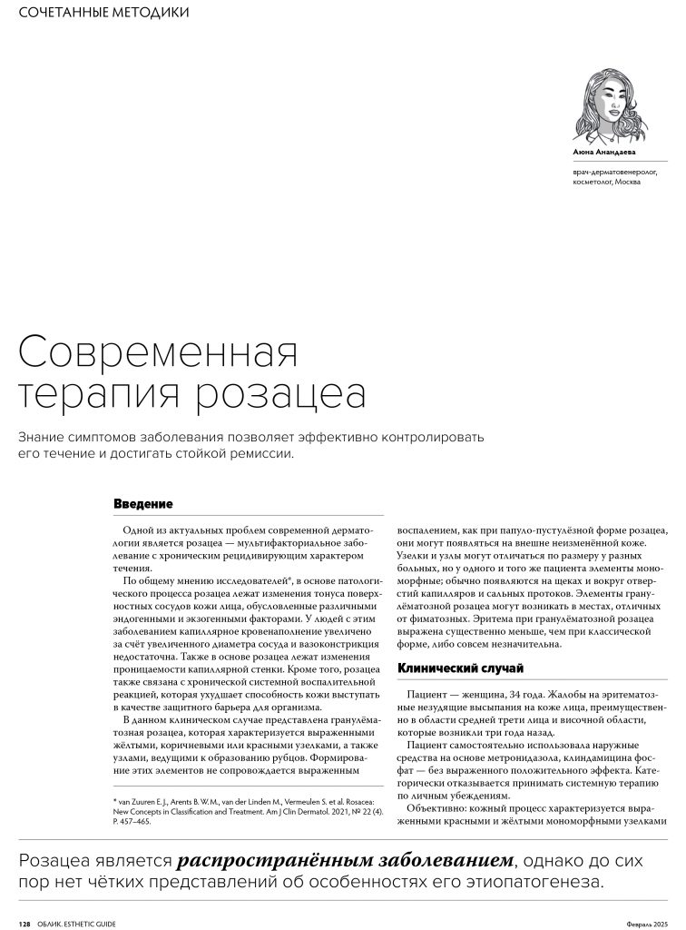Главный врач сети клиник COSMOPRO, Анандаева Аюна Болотовна, поделилась своим профессиональным опытом с ведущим журналом о косметологии «Облик», рассказав о новых тенденциях в терапии розацеа.